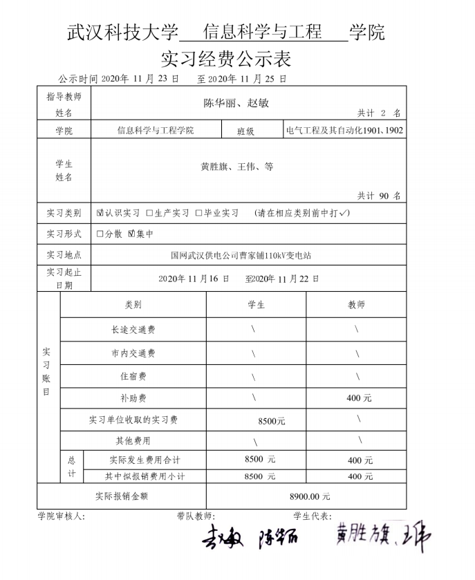 電氣工程2019級(jí)認(rèn)識(shí)實(shí)習(xí)公示表