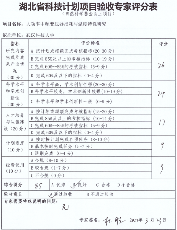 按照《省科技廳關(guān)于組織開(kāi)展湖北省科技計(jì)劃項(xiàng)目驗(yàn)收工作的通知》要求,集團(tuán)組織成立專家評(píng)審組,對(duì)以下三個(gè)2022結(jié)題項(xiàng)目開(kāi)展驗(yàn)收。驗(yàn)收結(jié)果匯總?cè)缦卤恚?/span>