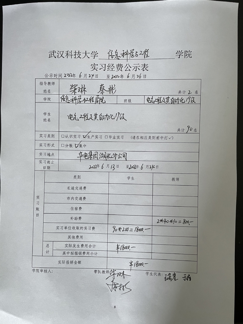 2019級電氣工程及其自動化專業(yè)實習經(jīng)費公示表