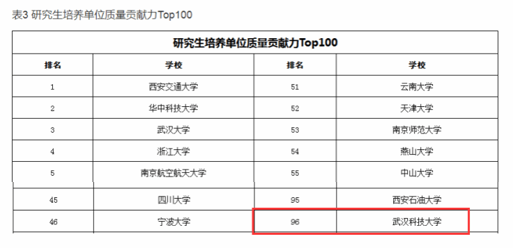 我校從650余家高校和科研院所中脫穎而出,分別在研究生培養(yǎng)單位貢獻(xiàn)力TOP100中名列90,在研究生培養(yǎng)單位規(guī)模貢獻(xiàn)力TOP100中名列70,在研究生培養(yǎng)質(zhì)量貢獻(xiàn)力TOP100中名列96。