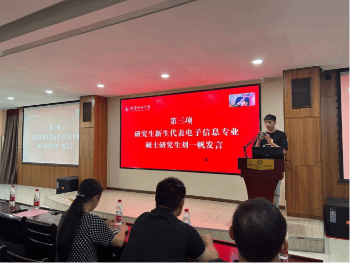 武科大網(wǎng)訊(通訊員 李軻)信息學(xué)院于9月15日上午在教十樓學(xué)術(shù)報(bào)告廳舉行了2023年研究生新生開學(xué)典禮。學(xué)院院長劉振興、副院長吳謹(jǐn)、副院長陳曦、副院長朱斌、黨委副書記陳凱、自動(dòng)化系黨支部書記黃衛(wèi)華、電氣系主任柴琳、電信系副主任但峰、微電子系副主任羅輝、電工電子課部支部委員武達(dá)亮、研究生輔導(dǎo)員吳廣良老師和2023級研究生輔導(dǎo)員張得運(yùn)老師出席了此次典禮。本次典禮由黨委副書記陳凱老師主持,參與開學(xué)典禮的還有研究生二年級代表王蔡琪同學(xué)以及2023級全體碩士和博士研究生。