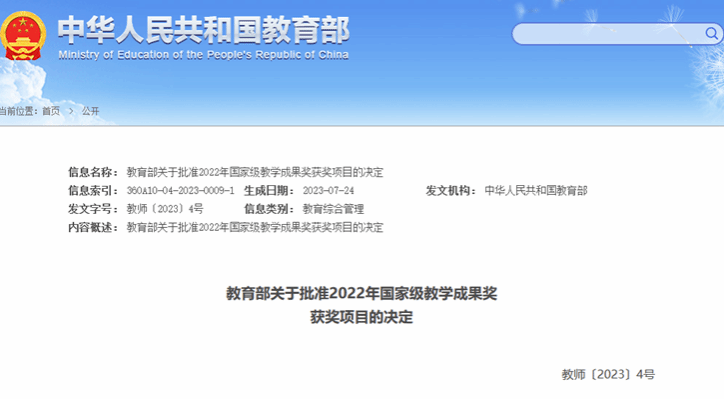 7月24日,教育部發(fā)布關(guān)于批準2022年國家級教學成果獎獲獎項目的決定。我校吳懷宇教授參與完成的“‘鑄鋼魂 深交融 重挑戰(zhàn) 強協(xié)同’冶金類新工科人才培養(yǎng)體系探索與實踐”喜獲高等教育(本科)國家級教學成果獎二等獎。