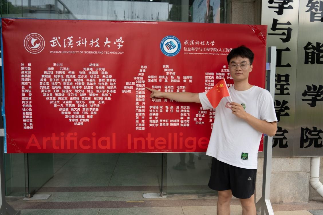 圖6:新生們在學院門口字云圖海報前打卡 李軻攝