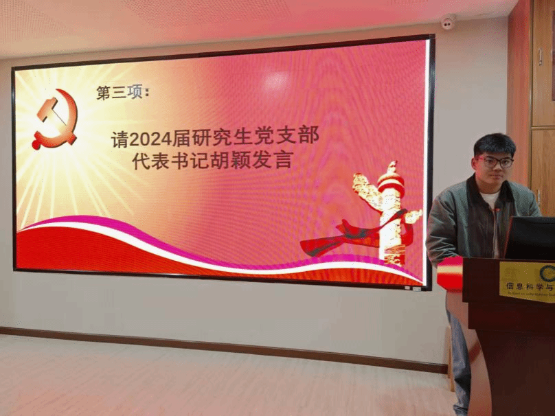 隨后,2024屆研究生黨支部代表書記胡穎發(fā)言。胡穎回顧了過去一年黨支部在組織建設(shè)、思想引領(lǐng)以及服務(wù)同學(xué)等方面的工作情況。他提到,在組織建設(shè)上,黨支部通過開展形式多樣的主題黨日活動,增強了黨員之間的凝聚力和向心力;在思想引領(lǐng)方面,積極組織黨員學(xué)習(xí)黨的理論知識,引導(dǎo)大家堅定理想信念,提高政治素養(yǎng);在服務(wù)同學(xué)上,黨支部發(fā)揮先鋒模范作用,為同學(xué)們解決學(xué)習(xí)和生活中的實際困難,得到了同學(xué)們的廣泛認(rèn)可。胡穎表示,過去一年的成績離不開全體黨員的共同努力,同時也感謝學(xué)校和學(xué)院黨組織的關(guān)心與支持。他希望新一屆黨支部能夠繼續(xù)發(fā)揚優(yōu)良傳統(tǒng),不斷創(chuàng)新工作方法,為黨支部的發(fā)展注入新的活力。
