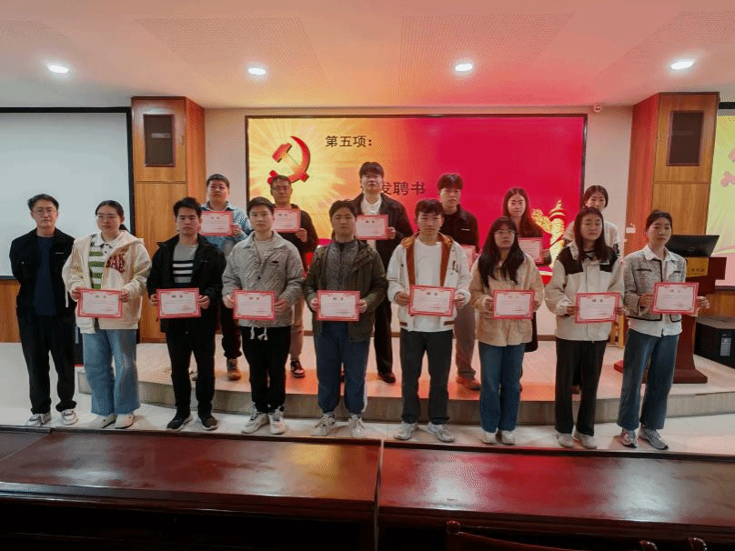 最后,輔導(dǎo)員張得運、唐瓊為2025屆黨支部成員頒發(fā)聘書,并為2024屆黨支部書記贈送書籍。張得運強調(diào),新一屆黨支部成員要樹立團隊意識和大局觀念,分工協(xié)作,共同推進黨支部工作不斷向前發(fā)展。